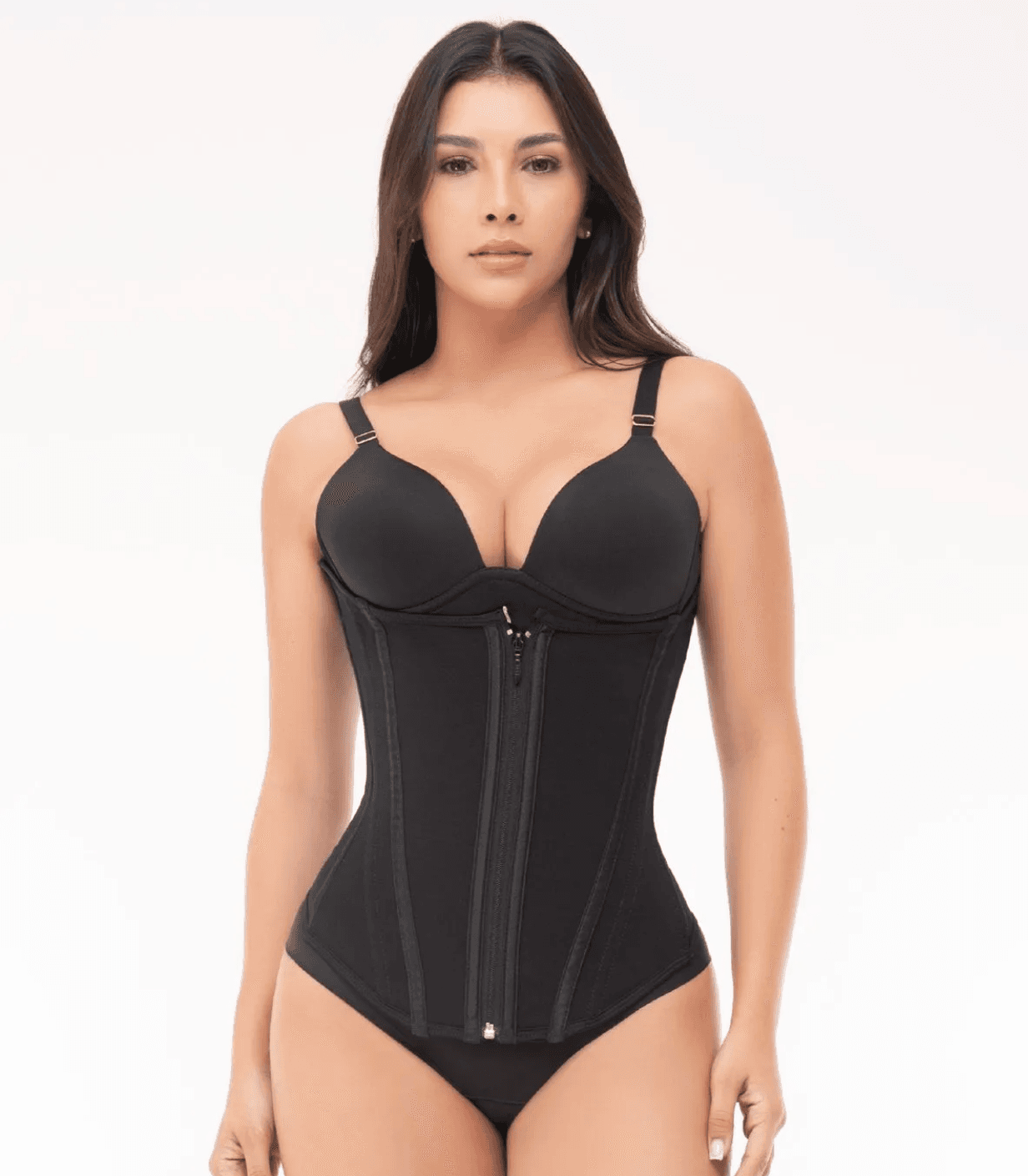 Nuestra Cinturilla Corset Strapless es tu aliada para moldear la figura con un control alto y de forma discreta. Diseñada con un cierre frontal invisible y 4 niveles de ajuste, te permite ir ajustando medidas hasta llegar a la deseada. Sus varillas internas estilizan la zona del abdomen y la espalda, garantizando una figura más definida y elegante.
