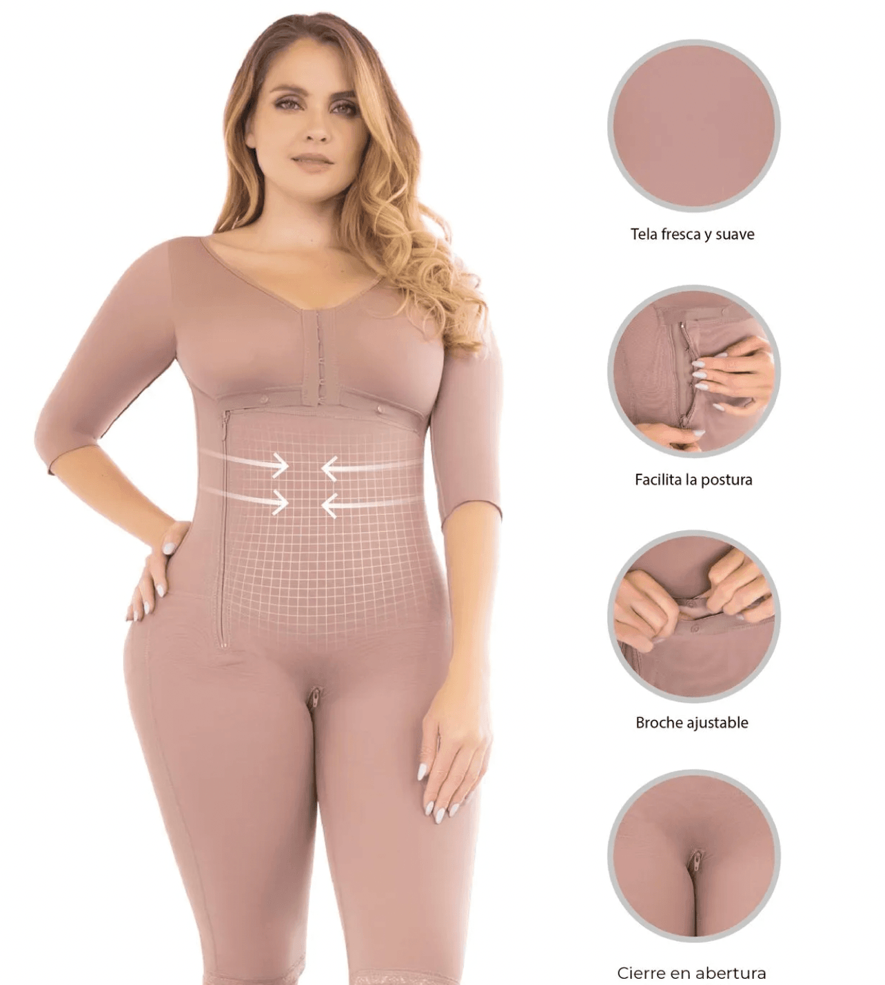 Faja Postquirúgica, postparto y de uso diario diseñada para brindar soporte y comodidad. Elaborada en lycra fria en el interior para mayor suavidad y Powernet en el exterior para ejercer una alta compresión. Alivia los dolores después de una intervención quirúrgica desinflamando y pegando la piel al músculo. Contiene cremallera en la zona íntima para poder ir al baño de forma sencilla y cómoda. Tiene cola con realce natural por lo que es perfecta para lipotransferencias de glúteo. Contiene cremallera lateral lo que la hace perfecta para abdominoplastias y post- partos por cesárea.